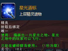 使用:描画出一片星光之地。星光之地中的玩家可以飞行。只能在破碎群岛使用。(1秒冷却)